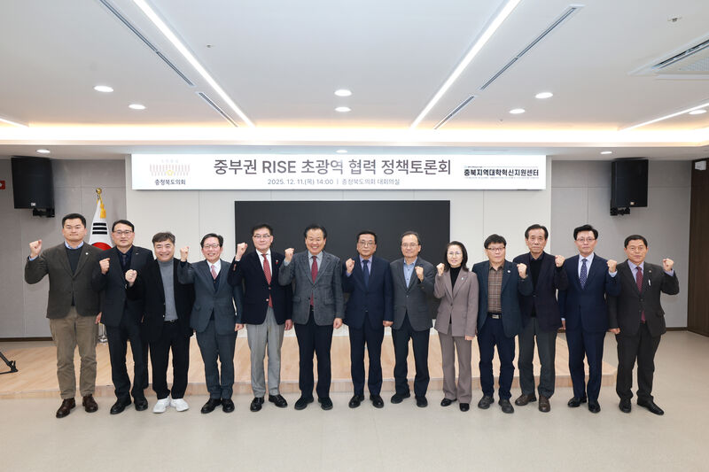좌장을 맡은 이동우 의원은 “오늘 논의된 지역센터 법인화, 세종 공동캠퍼스 활용, 보텀업 정책 설계 방식 등은 충청북도의회와 집행부가 면밀히 검토해 중부권 RISE 정책에 적극 반영할 계획”이라며 “초광역 협력은 단순한 행정 협업을 넘어 지역이 함께 성장하는 구조를 만드는 일”이라고 강조했다.