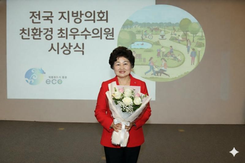 용산구의회 이미재 의원이 ‘2025 전국지방의회 친환경 최우수의원’에 선정되며 4년 연속 수상의 기록을 세웠다. 사진=용산구의회