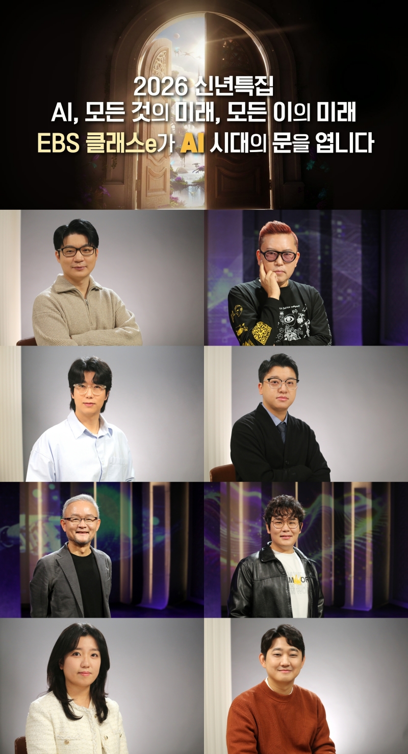 EBS는 2026년 신년 특집으로 <클래스e> ‘AI, 모든 것의 미래, 모든 이의 미래’를 편성해, AI 기초 개념부터 실무 활용까지 아우르는 집중 강연 시리즈를 방송한다. 방송은 1월 5일부터 2월 26일까지 8주간, 매주 월~목 오전 5시 30분 EBS1에서 진행된다.