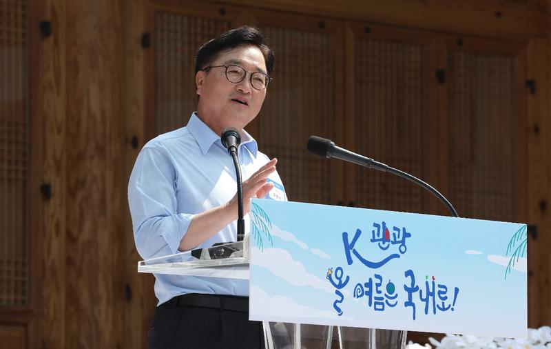 우원식 국회의장이 7월 8일 국회 사랑재에서 열린 ‘K-바캉스 캠페인’에 참석해 여름 휴가철 국내 여행을 통한 민생경제 회복을 강조했다.
