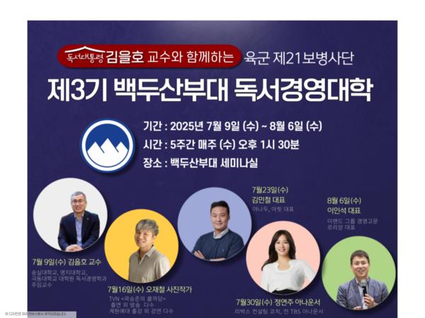 제3기 백두산부대 독서경영대학 포스터(사진 제공 = 이혜정 기자)