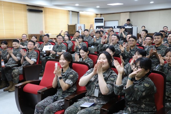 김 교수의 강의는 ‘읽기’를 넘어 ‘생각하기’를 강조하며 열정적이고 유쾌하게 진행됐다. 장병들은 활발히 반응하고 메모하며 몰입했고, 강의 내내 공감과 웃음이 오갔다. 김 교수는 "채용담당자가 지원자의 일곱 단어만 들어도 사고 수준을 파악한다. 독서를 한 사람들의 어휘는 다르다"며 어휘 사용이 곧 사고의 깊이를 드러낸다고 강조했다.