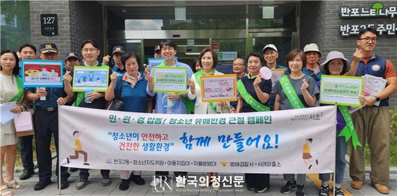 서울특별시의회 이숙자 운영위원장(국민의힘·서초2)은 지난 7월 9일(수) 오후 2시, 서초구 반포2동 일대에서 열린 ‘청소년 유해환경 근절 캠페인’에 참석해 청소년 보호 활동에 나섰다. 이날 캠페인에는 방배경찰서, 서래파출소, 청소년지도위원, 아동지킴이, 자율방범대 등 약 20여 명의 지역사회 인사들이 참여해 민관이 함께하는 공동 대응의 중요성을 보여주었다.