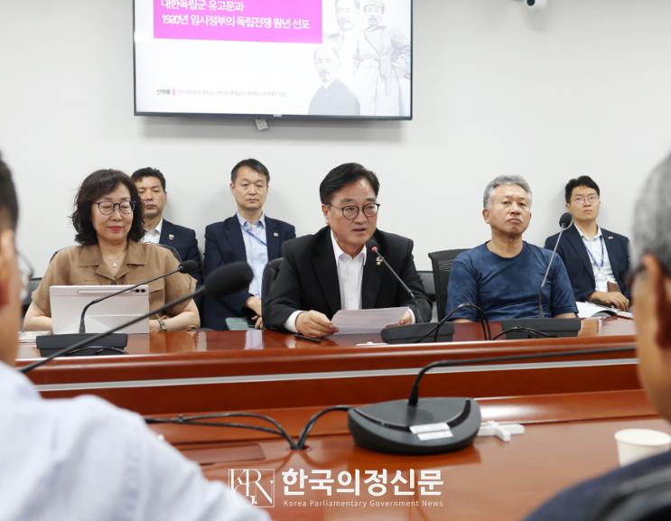 우원식 국회의장이 7월 18일 오후 국회 의원회관에서 열린 ‘독립운동 기념공원 필요성 토론회’에 참석해, 독립전쟁 기념공원 조성의 필요성과 역사적 의미를 강조했다.