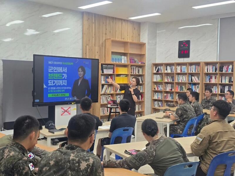 이날 특강 연단에 선 인물은 퍼스널브랜딩그룹 MU 대표이자 『감으로 하는 브랜딩은 끝났다 - AI 퍼스널브랜딩 2.0 혁명』(2025, 힘찬북스)의 저자, 지식소통가 조연심 대표다. 그는 "군인에서 브랜드가 되기까지"라는 주제로 강연을 펼치며 AI 시대에 걸맞은 퍼스널 브랜딩 전략을 군 장병들에게 전달했다.