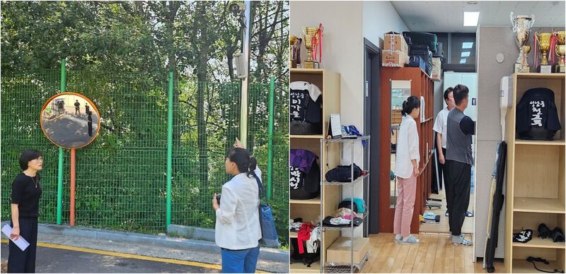 김영림 의원이 상도중학교와 성남중학교를 직접 방문해 학생들의 생활공간, 노후시설, 안전 관련 시스템 등을 꼼꼼히 점검하고 있다. 사진제공=김영림 동작구의원