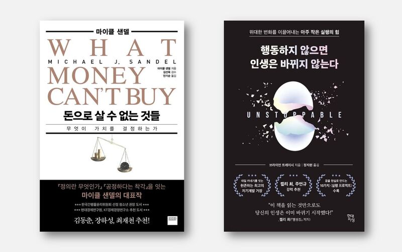 윤재구 의원이 정치활동에 영향을 받은 책으로 꼽은 마이클 샌델의 『돈으로 살 수 없는 것』과, 요즘 추천하고 있는 책 브라이언 트레이시의 『행동하지 않으면 인생은 바뀌지 않는다』