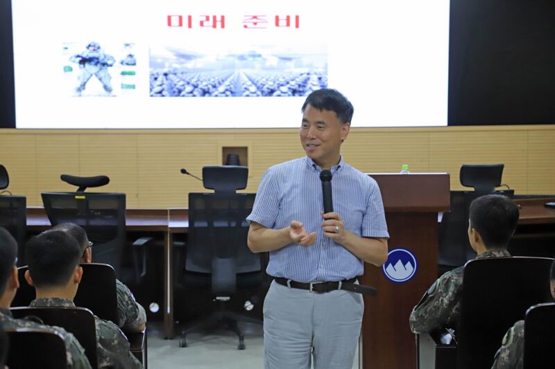 제3기 백두산부대 독서경영대학에서 이인석 이랜드 고문의 강연이 진행되었다.(사진 제공 = 21사단)