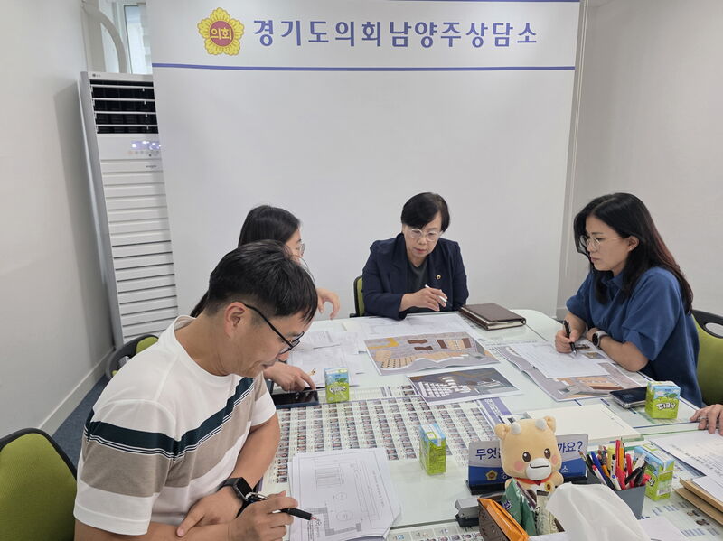 조미자 부위원장(더불어민주당, 남양주3)은 18일 경기도의회 남양주 지역상담소에서 경기도 콘텐츠산업과 및 경기콘텐츠 진흥원 관계자들과 함께 진접역 ‘경기도 지하철서재’의 조성과 운영 방안에 대해 논의했다. 사진=경기도의회