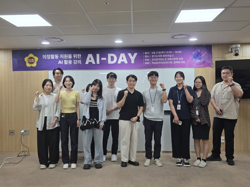 경기도의회가 인공지능(AI) 기술을 행정과 의정활동 지원에 접목하기 위한 새로운 시도를 시작했다. 경기도의회 학습동아리 정책연구회(회장 최민경 정책지원관)와 AI연구회는 8월 21일(목) 오후 1시부터 4시까지 경기도의회 중회의실 2에서 전국공무원노조 의회사무처 지회와 공동으로 ‘AI-day’ 강연을 열고, 공공부문에서의 AI 활용 가능성과 발전 방향을 함께 모색했다.