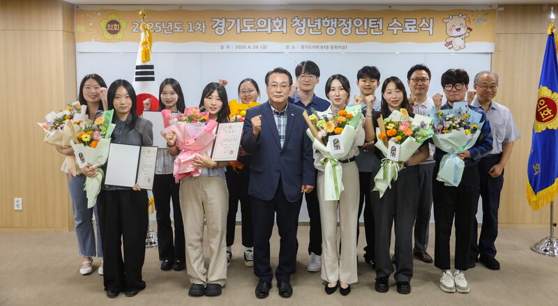 경기도의회가 청년들에게 실질적인 행정 경험과 진로 탐색의 기회를 제공하기 위해 운영한 ‘2025년 제1차 청년행정인턴 사업’이 성공적으로 마무리됐다. 도의회는 8월 29일 의회 본청에서 인턴 활동을 마친 청년들과 함께 수료식을 개최하고, 지난 4개월간의 성과를 공유하는 자리를 마련했다.