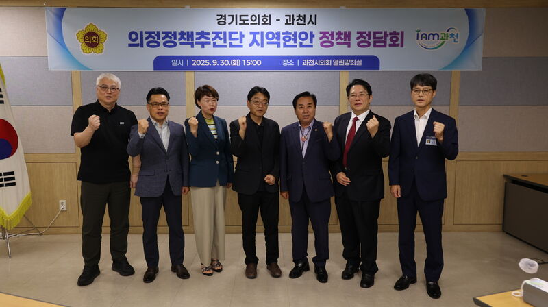경기도의회 의정정책추진단(단장 김성남 의원)은 9월 30일 과천시청 회의실에서 ‘지역 현안 정책 정담회’를 개최하고, 과천시 주요 정책 현안과 도의회 차원의 지원 방안을 논의했다. 이번 정담회는 주민 생활환경 개선과 지역 현안 해결을 위한 실질적 정책 협력의 장으로 마련됐다.