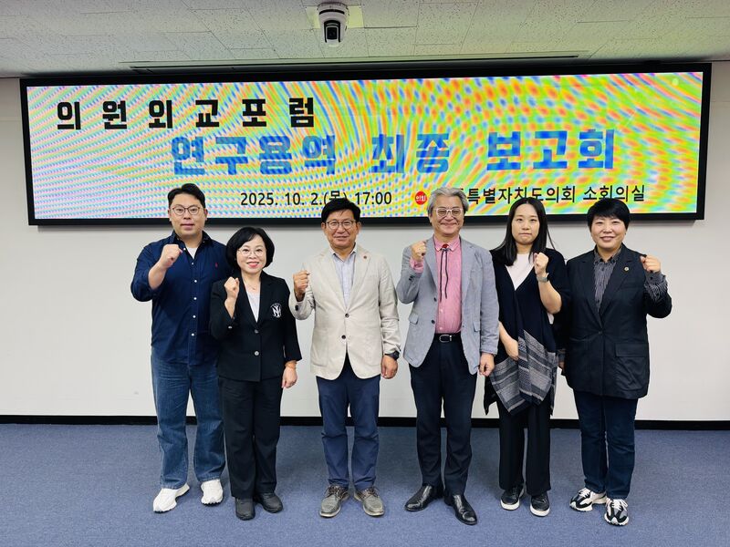 김경학 대표의원은 “이번 연구용역 보고회는 단순한 외교활동의 나열이 아니라, 지방의회의 외교적 정체성과 역할을 재정립하는 중요한 출발점”이라며 “제주형 지방외교 전략을 마련해 국제도시 제주에 걸맞은 글로벌 의정 역량을 강화하고, 지역의 브랜드 가치를 높이는 데 최선을 다하겠다”고 강조했다.