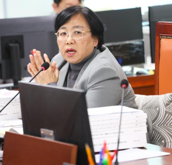 경기도의회에서 열린 행정사무감사에서 조미자 의원이 경기도둘레길 운영 개선과 활성화 방안을 지적하며 질의하고 있는 모습. 사진=경기도의회