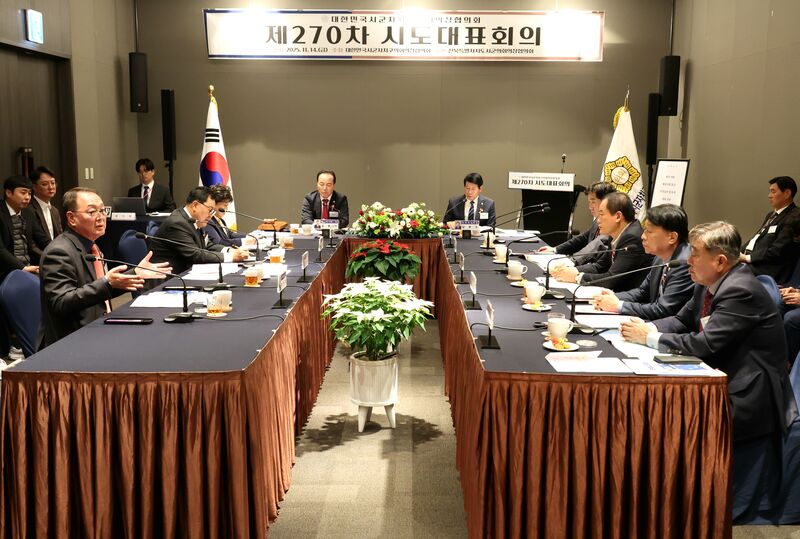 전주에서 열린 제270차 대한민국시군자치구의회의장협의회 시도대표회의에서 참석자들이 안건을 논의하며 회의를 진행하고 있는 모습. 사진=전주시의회