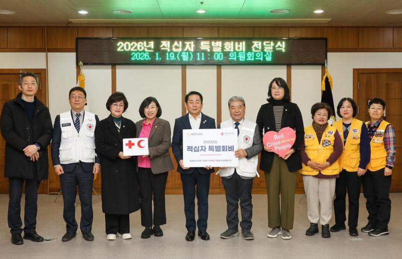 의정부시의회 김연균 의장은 2026년도 대한적십자사 특별회비를 전달하며, 지역사회 취약계층과 위기가정을 지원하기 위한 나눔 실천에 동참했다. 이번 특별회비 전달은 재난·재해 대응과 복지 사각지대 해소, 긴급구호 활동 등 인도주의적 사업을 수행하고 있는 대한적십자사의 공익 활동을 지원하기 위한 취지로 마련됐다.