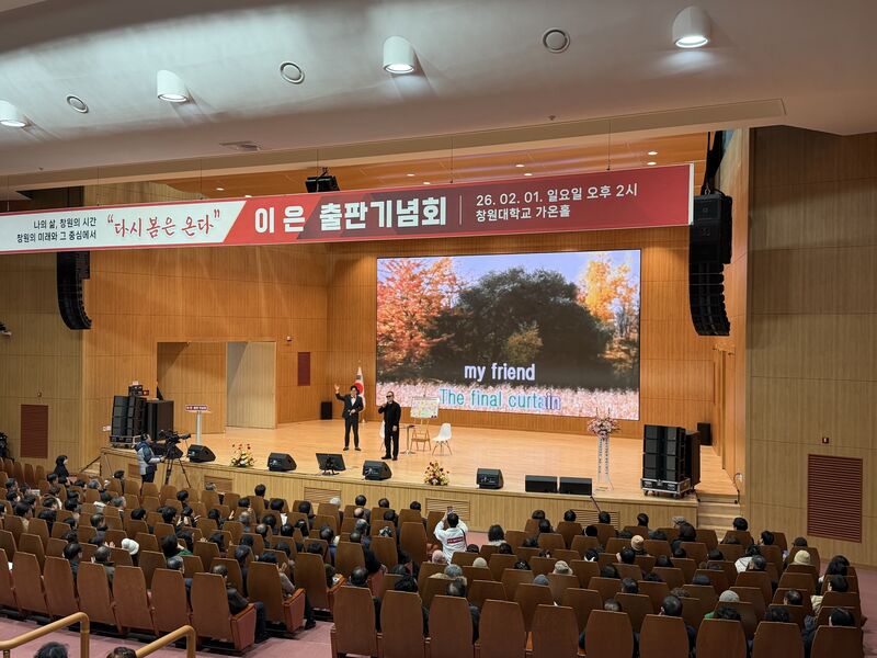 이은 전 창원시 정무특보의 신간 『다시 봄은 온다』 출판기념회가 2월 1일 창원대학교 가온홀에서 열렸다. 이날 행사에는 지역 시민과 각계 인사, 문화·교육 관계자 등 약 1천 명이 참석해 현장을 가득 메웠다. 출판기념회는 도서 소개에 그치지 않고, 한 개인의 삶의 궤적과 태도를 성찰하는 인문적 대화를 공유하는 자리로 기획됐다.