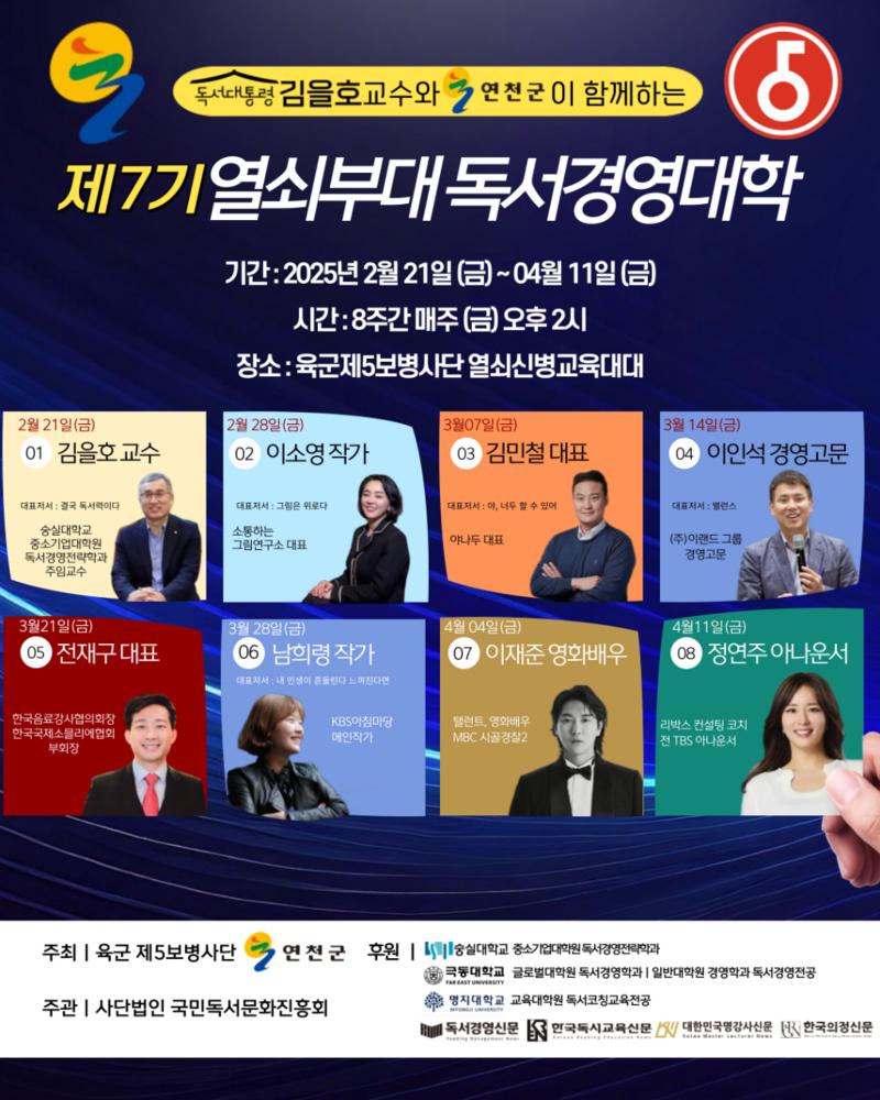 연천군과 함께하는 열쇠부대 독서경영대학은 앞으로도 꾸준한 강연과 프로그램을 통해 군 장병들에게 독서의 가치와 리더십을 전하는 역할을 지속할 예정이다.
