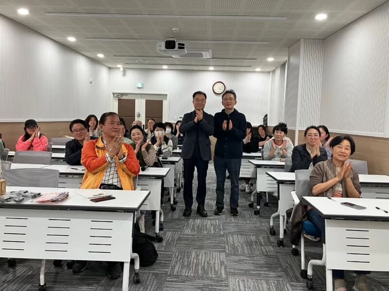 단체 사진 촬영 중이다. 왼쪽 연천 중앙 도서관 백남경 팀장, 오른쪽 나흥식 교수(사진 제공 = 연천군도서관) 이번 프로그램은 연천군과 연천군 중앙도서관이 주관하고 있으며, 운영 기간은 10월까지 총 10회에 걸쳐 중앙도서관 시청각실에서 진행된다. 참여를 원하는 군민은 연천군도서관 홈페이지(문화마당 > 수강 신청)에서 온라인으로 신청할 수 있다. 자세한 사항은 홈페이지를 참조하거나 독서문화진흥사업 담당자(031-839-4411)에게 문의하면 된다.