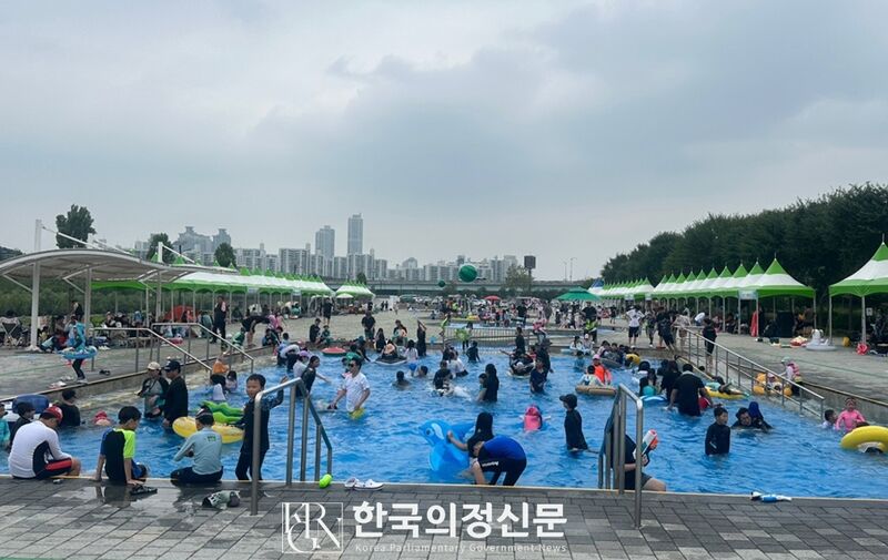 안양천 물놀이장에서 물놀이 중인 어린이들의 모습. 사진=구로구