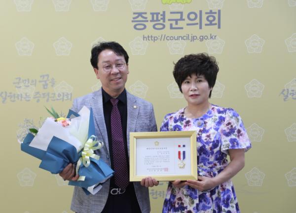 이창규 의원이 대한민국시군자치구의회 의장협의회로부터 '대한민국 지방의정봉사상'을 수상했다. 사진=증평군의회