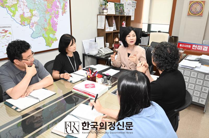 천미경 의원이 지난 8일, 유휴공간을 활용한 상권 활성화 방안 업무협의를 하고 있다. 사진=울산광역시의회