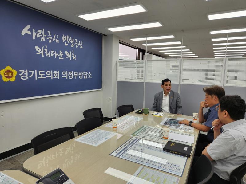 경기도의회 이영봉(더민주·의정부2)도의원은 지난 7월 22일 경기도의회 의정부상담소에서 의정부시 관계자들과 함께 호원1동 안말로 85번길 일대의 침수 피해 민원에 대한 해결 방안을 논의했다. 사진=경기도의회