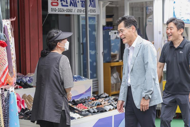 지역 소상공인과 대화 나누고 있는 이기재 양천구청장 모습. 사진=양천구