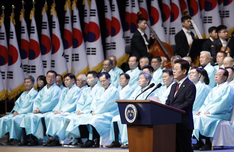 이 대통령은 광복을 가져온 독립투사들의 헌신을 기리며 “독립투쟁의 역사를 부정하거나 독립운동가를 모욕하는 행위는 용납될 수 없다”고 못 박았다.