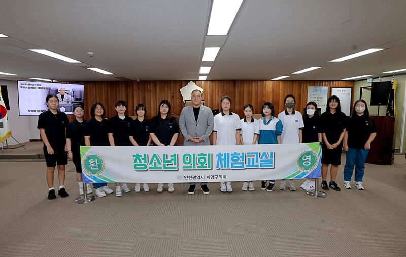 계양구의회, 청소년의회 체험 프로그램 운영…“민주시민 성장 밑거름 기대” - 계산여자중 글로벌리더스 동아리 학생 15명 참여, 모의 의회 활동으로 지방의회 기능 직접 체험
