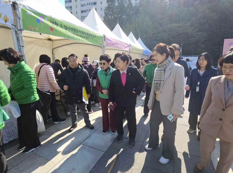 10월 28일 열린 ‘우리는 한가족! 함께家 축제 한마당’ 현장에서 구미경 서울시의원이 행사 부스를 둘러보며 시민들과 대화하고 있다. 사진=서울특별시의회