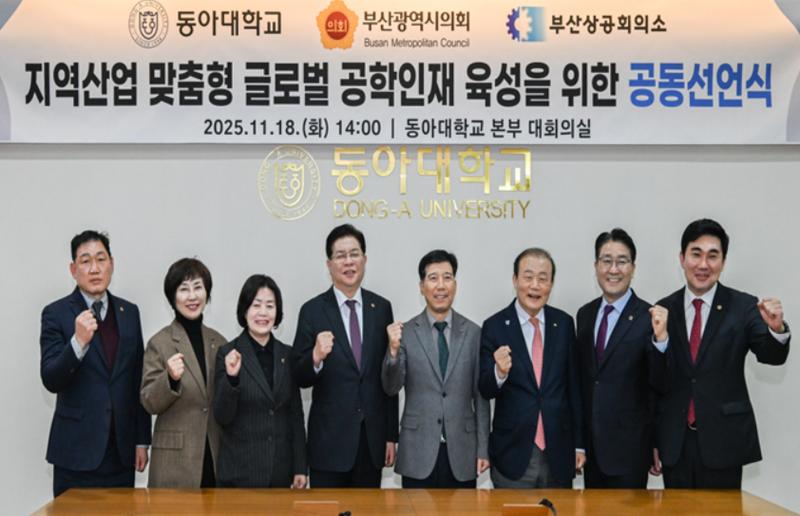 부산광역시의회 지역경제활성화 특별위원회가 지역산업 기반 공학 인재 육성을 위해 대학과 경제계를 잇는 협력 플랫폼 조성에 나섰다. 시의회는 18일 동아대학교 승학캠퍼스 대회의실에서 동아대학교, 부산상공회의소와 함께 ‘지역산업 맞춤형 글로벌 공학 인재 육성 공동선언식’을 개최했다고 밝혔다. 이번 선언식은 지역산업과 미래경제를 주도할 인재 확보 문제를 핵심 과제로 정의하고, 교육-산업-정책의 연계체계를 강화하기 위한 중요한 정책적 이정표로 평가된다.