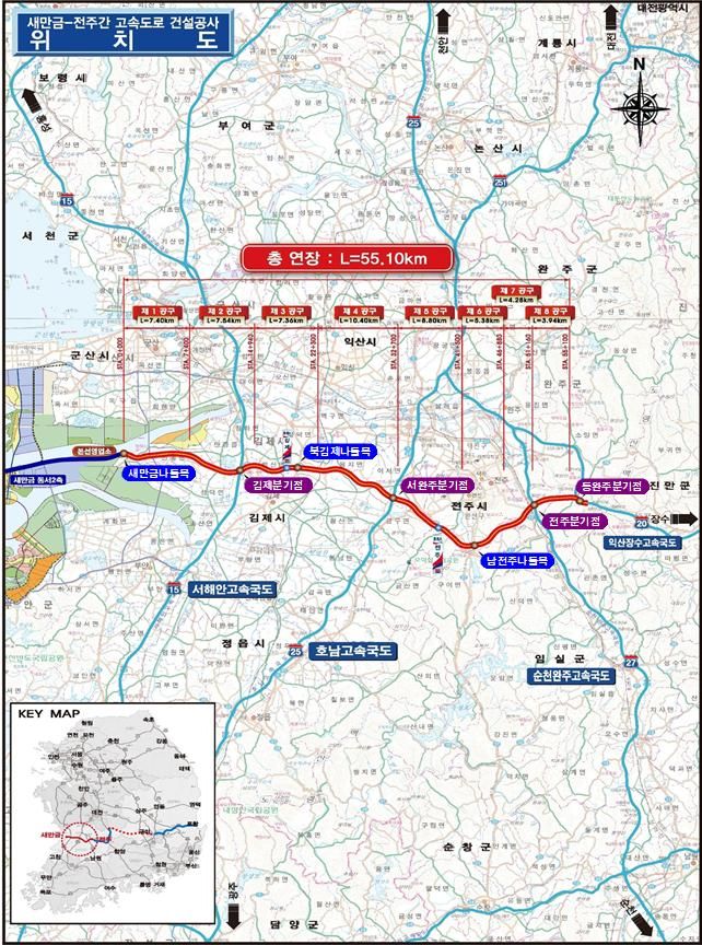 새만금~전주 간 고속도로 위치도. 전북도 제공