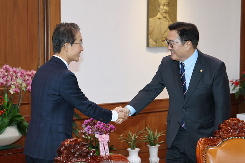 우원식 국회의장은 1월 7일 오후 국회의장 집무실에서 김호철 신임 감사원장을 접견하고, 감사원의 정치적 중립성과 독립성 회복을 통한 국민 신뢰 회복이 필요하다는 입장을 밝혔다. 사진= 국회의장비서실