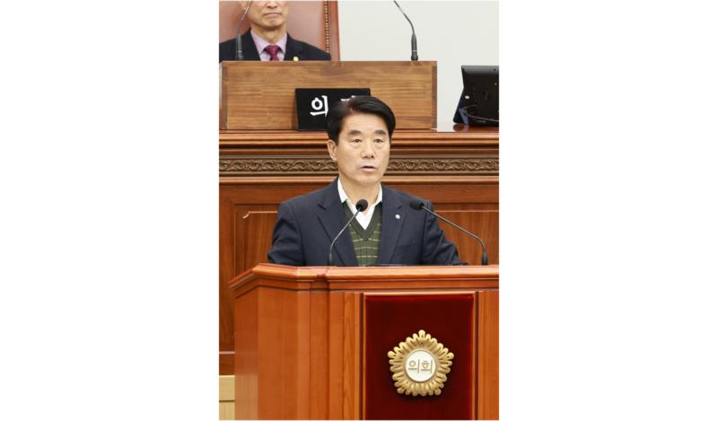 창원특례시의회 이천수 의원이 제 149회 임시회 제1차 본회의에서 '양식어가 폐업지원 제도화 촉구 건의안'을 대표 발의하고 있다. (사진 = 창원특례시의회)