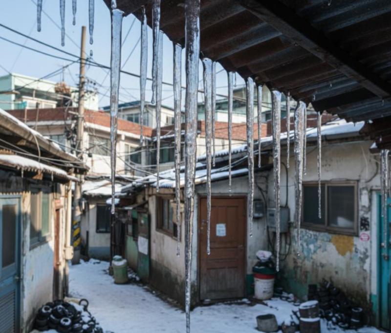 연일 이어진 강추위로 주택 처마에 고드름이 얼어붙은 가운데, 정부가 노숙인·쪽방주민 등 취약계층 보호대책 강화에 나섰다. 사진=생성형 AI제작 이미지