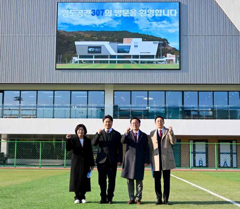 특별위원회는 첫 번째 일정으로 영도구 동삼혁신지구 내에 조성된 ‘영도공간 307’을 찾았다. 이곳은 공공기관 이전과 연계하여 지역 주민들의 정주 여건을 개선하기 위해 건립된 생활밀착형 복합시설이다. 주요 시설로는 e-스포츠센터(VR체험관)와 다함께돌봄센터 등이 입주해 있어 청년층과 가족 단위 방문객을 위한 문화·복지 공간으로 활용되고 있다.