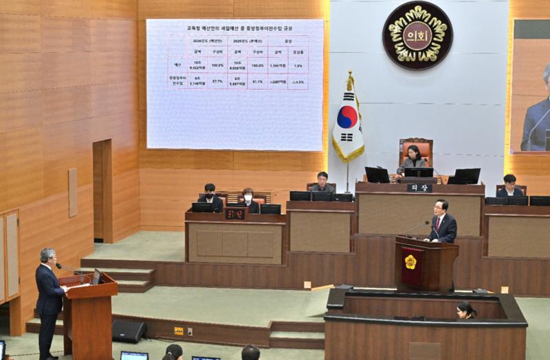 김형재 시의원이 지난 2025년 11월 서울시의회 정례회에서 정근식 교육감에게 교육현안 관련 질의를 하고 있다. 사진=서울시의회